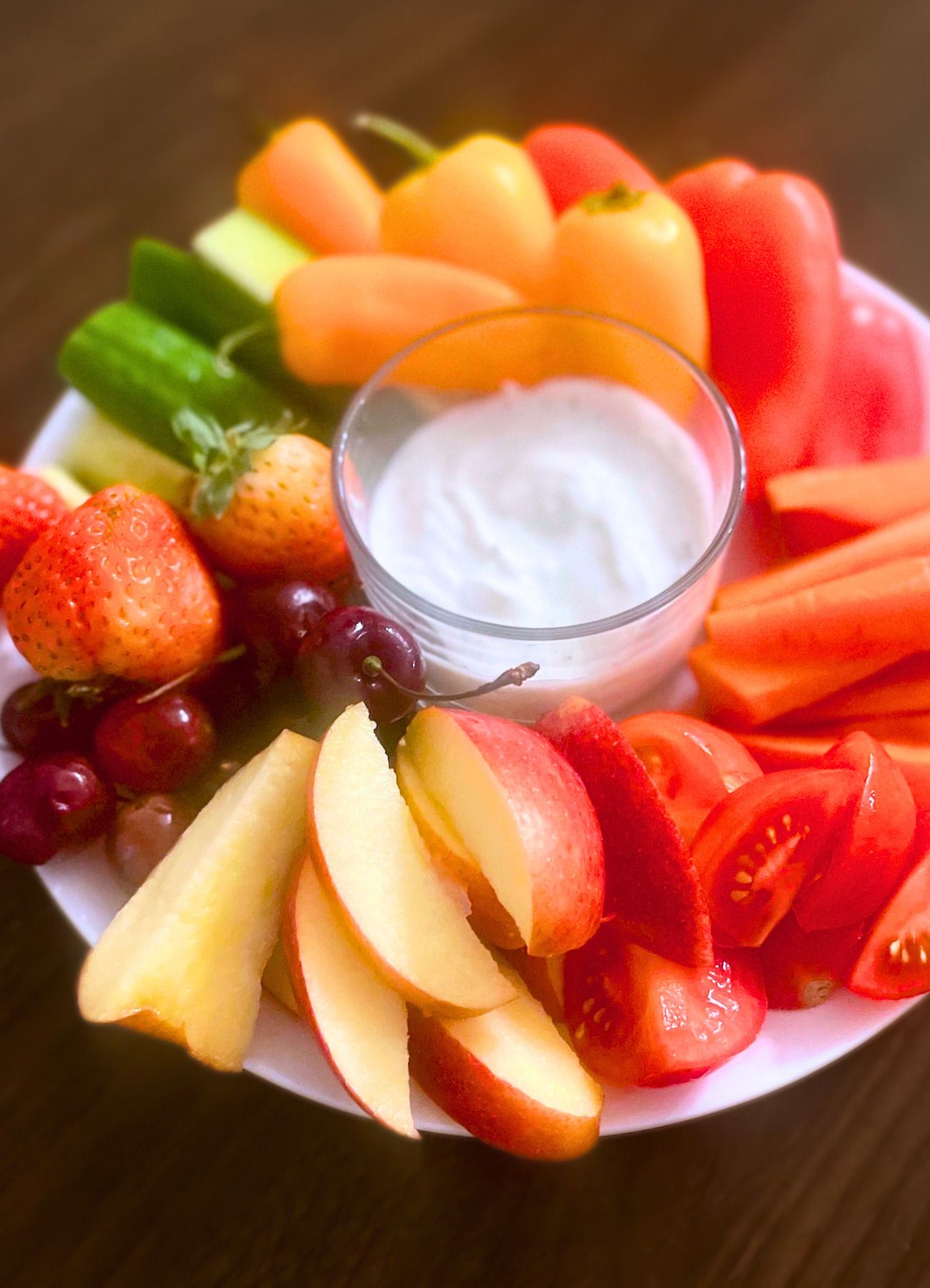 - Try: When putting together your shopping list, add enough vegetables & fruit to include with every meal & snack. We recommend fruit with breakfast & morning snack, and veggies with lunch, afternoon snack, and dinner.